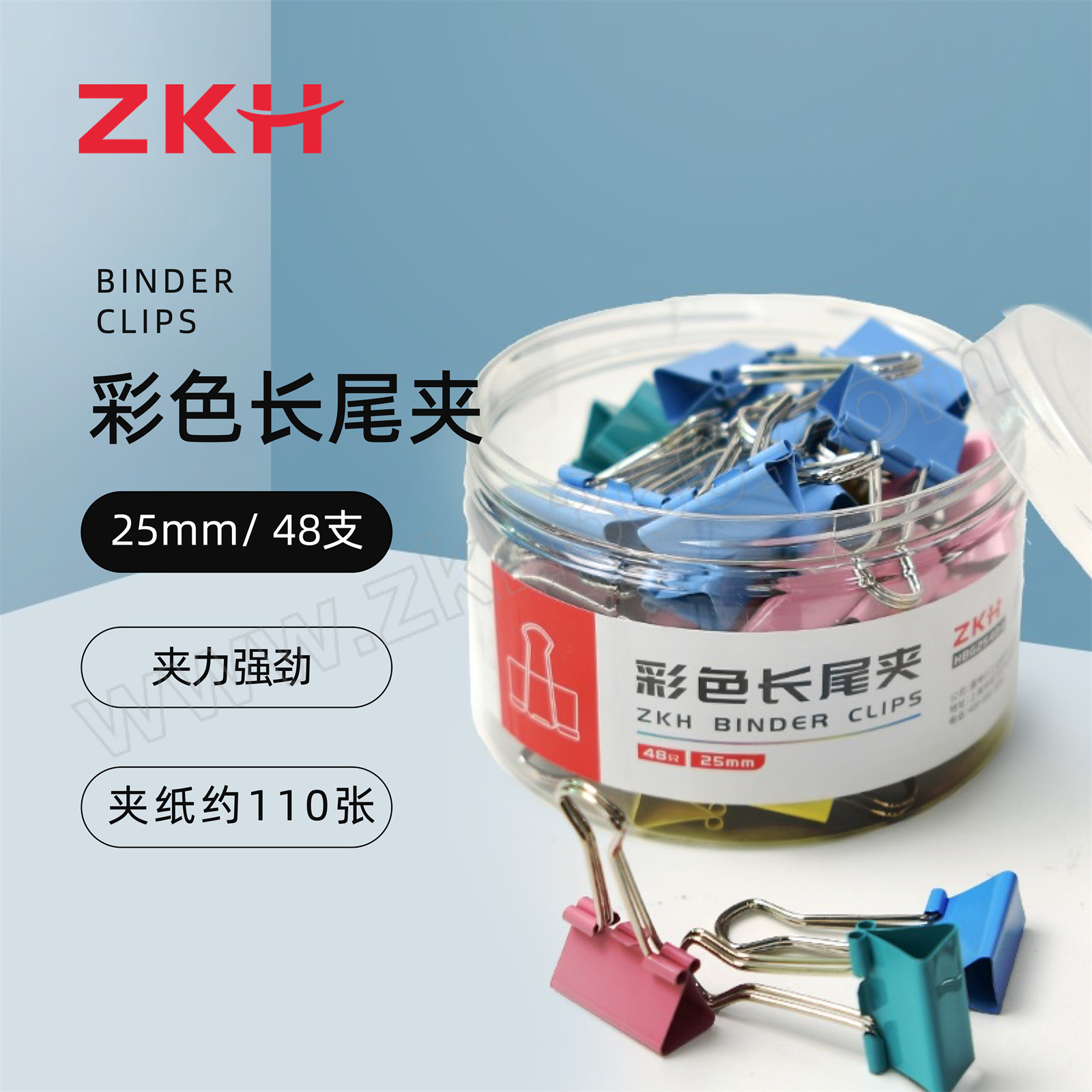 ZKH/震坤行 彩色长尾夹 HBG25484 25mm