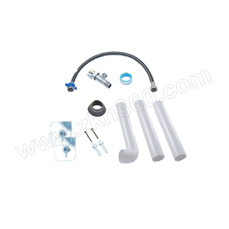 50cm进水软管×1+角阀开关×1+生料带×1+密封胶圈×1+免钉贴螺丝×2+膨胀螺丝×2+排水管组×1